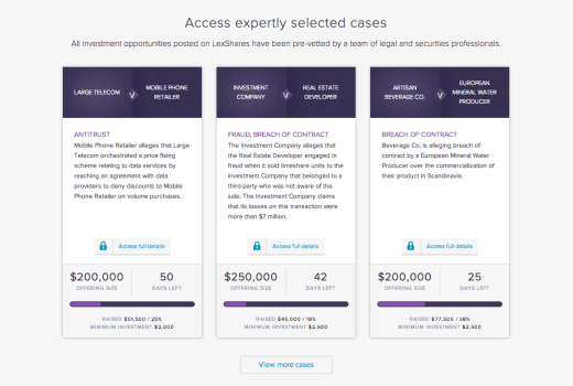 – http://blogs.wsj.com/venturecapital/2014/11/19/lexshares-launches-marketplace-for-investors-to-fund-legal-claims/?KEYWORDS=lexshares