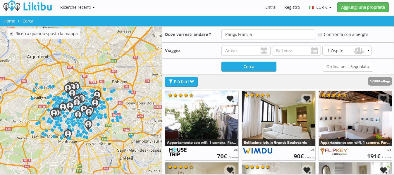 Arriva in Italia, Likibu, il primo comparatore di offerte dedicato alla ricerca di affitti di case per le vacanze. Già ampiamente sviluppato in Francia, il sito ha recentemente ottimizzato la sua versione italiana ed è pronto per essere scoperto e utilizzato anche dai viaggiatori del Belpaese. Con Likibu – nato a gennaio 2015 per mano di due giovani francesi, Aurélien Jemma e Guillaume Terrain –  è possibile comparare oltre 2,5 milioni di affitti di casa vacanze provenienti da 25 siti partner, tra cui quelli del Gruppo HomeAway, Booking, Wimdu e altri leader del settore dell’home sharing. Il funzionamento è identico ai  comparatori di voli e di hotel: Likibu agisce, quindi, da intermediario e permette agli interessati di trovare la casa vacanza in affitto più confacenete ai propri desiuderata in maniera affidabile, veloce e gratuita. Il nome Likibu, fortemente voluto dal Presidente cofondatore Aurélien Jemma, provenie dalla crasi di due parole di lingua swahili: Likiizo (che significa vancanze) + Karibu (che traduce il termine benvenute).