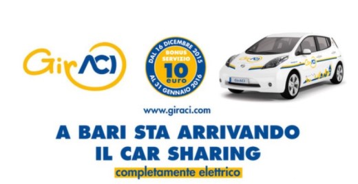 ACI Global, in collaborazione con il Comune di Bari, ha aperto le iscrizioni per il servizio di car sharing che partirà, con auto totalmente elettriche, nel mese di gennaio 2016. Dopo l’avvio, in primavera a Verona ed il recente start up operativo a Firenze, GirACI, il car sharing ACI Global, continua quindi a espandersi.