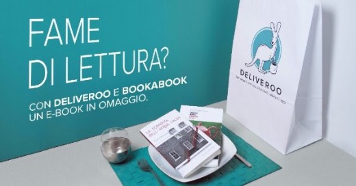 Deliveroo e Bookabook, la piattaforma di crowdfunding di libri, dopo il successo ottenuto dal progetto “Fame di lettura?” durante il weekend 15/17 hanno deciso di prolungare l’azione di marketing che prevede un libro in regalo per ogni ordine effettuato nei ristoranti che utilizzano il brand del canguro come servizio di food delivery. Come si legge, infatti, nel blog della società editrice effettuando una transazione con Deliveroo entro il 24 luglio (in uno dei ristoranti contrassegnati dall’icona dei libri) insieme al proprio ordine si riceverà in regalo un ebook edito da Bookabook da leggere sul proprio device. Bookabook è una piattaforma di crowdfunding (la raccolta fondi dell’era della sharing economy) del libro in Italia che nasce nell’aprile 2014 con due obiettivi: mettere i lettori al centro del processo di creazione del libro e dare agli autori una via d’accesso al mercato editoriale. La società nel 2014 è stata nominata nel Wired-Audi Innovation Award e nel 2015 è stata tra i finalisti al contest internazionale per l’innovazione in editoria, Renew the book. Da gennaio 2016 l’editore ha anche lanciato un social network degli scrittori, dove gli autori di Bookabook possono scambiare consigli e idee. Oltre ai libri che dal 15 al 17 luglio sono stati regalati in versione cartacea come Romanzo Còrso di Laurence Donnini, un giallo ambientato in Corsica e La Scoperta dell’Acqua Calda, un road movie ambientato in un condominio di periferia, si potrà leggere in formato ebook il pulp Deadflowers di Paola Tavella e Agostino Toscana, Corso Regina 68 di Camilla Bonetti, una Bridget Jones in salsa gianduia, e Enciclopedia dell’amore di Enzo Fileno Carabba, un’antologia sull’amore.