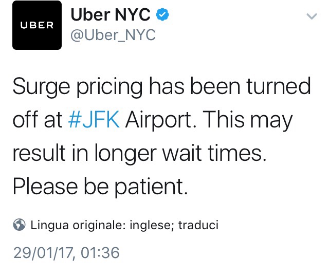 Dall’1 di febbraio Uber è ritornata a essere la app di ride sharing, la condivisione dell’auto dell’era della sharing economy, più scaricata nell’AppStore di Apple USA. Uber, come mostrano i dati di Appannie, è riuscita quindi a riappropriarsi in pochissimo tempo del primato e a ritornare davanti alla concorrente Lyft. Negli ultimi giorni di gennaio la rivale Lyft – dopo la polemica che si era scatenata attorno a Uber con l’hashtag #DeleteUber lanciato sui social network da molti utenti della società – aveva superato la società di Travis Kalanick come numero di download di app effettuate negli Stati Uniti tramite lo store di Apple. Le polemiche degli utenti Uber erano nate lo scorso weekend subito dopo l’entrata in vigore dell’ordine esecutivo emesso da Donald Trump in materia di immigrazione quando, come testimoniato da numero post sui vari social network, alcuni utenti avevano cancellato l’app Uber dai propri smartphone o tablet in segno di solidarietà ai tassisti di New York che stavano scioperando contro il provvedimento del neo Presidente USA. Il dato dell’1 febbraio è stato confermato anche dai download effettuati nella giornata di ieri 2 febbraio.